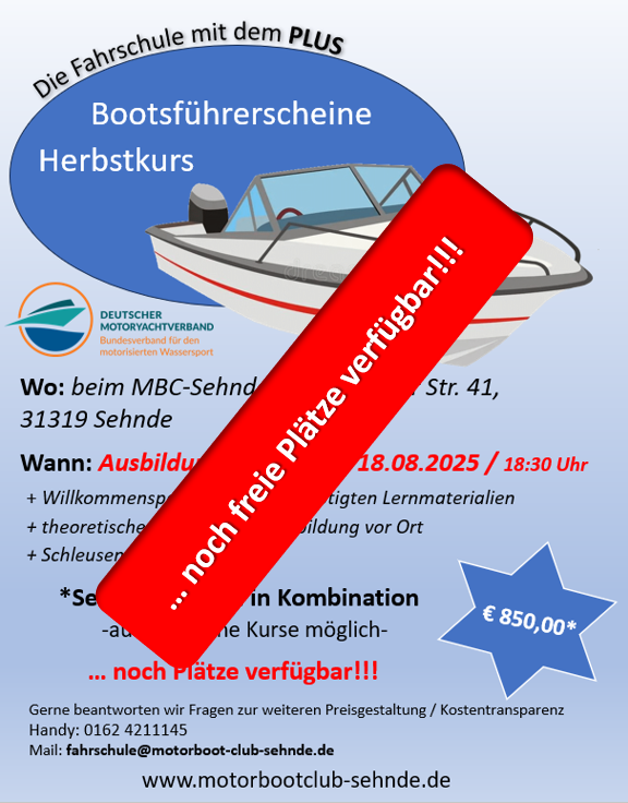 Informationen zur Fahrschulausbildung (SBF See und Binnen/SRC, UBI) findet Ihr hier.